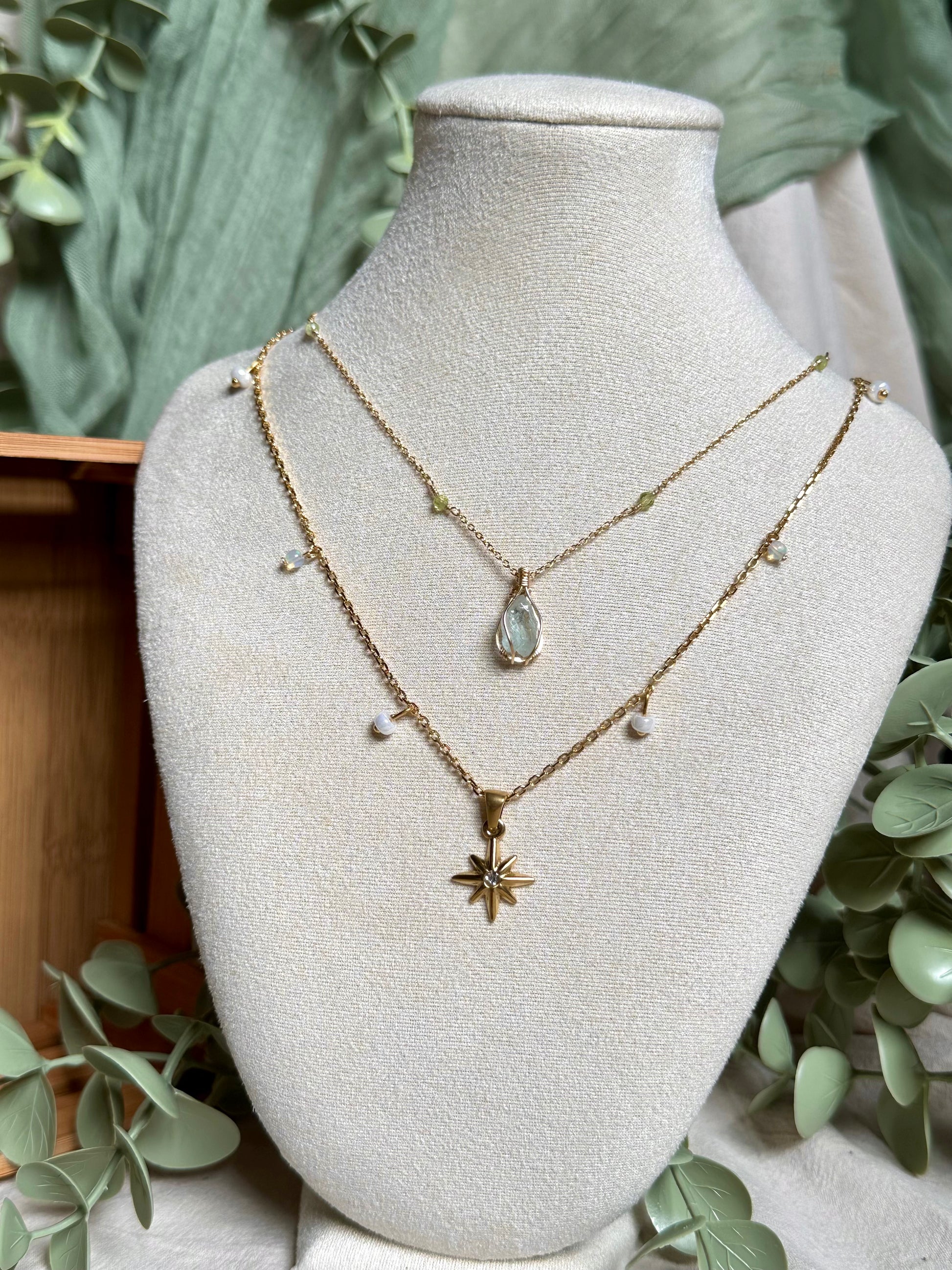 Dive into unique beauty with our Aquamarine Venus Necklace! This handmade necklace features stunning aquamarine, peridot, and opal, creating a one-of-a-kind piece. Embrace the playful energy and vibrant colors of this necklace, perfect for any occasion. Channel your inner Venus🐚